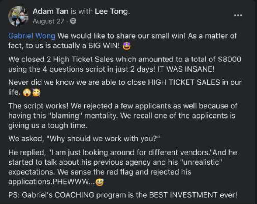 In just 12 months, he took one of his clients from 0 to SGD$13 million in revenue.